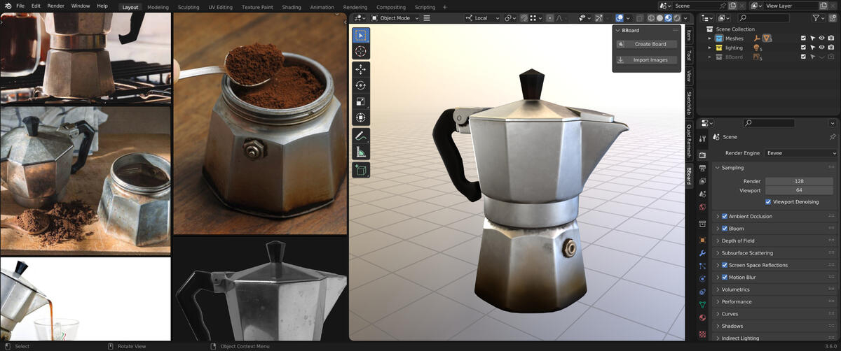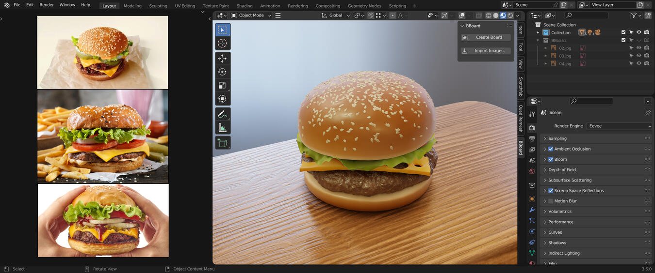 Embrace the simplicity and convenience of an integrated reference board in your Blender project.